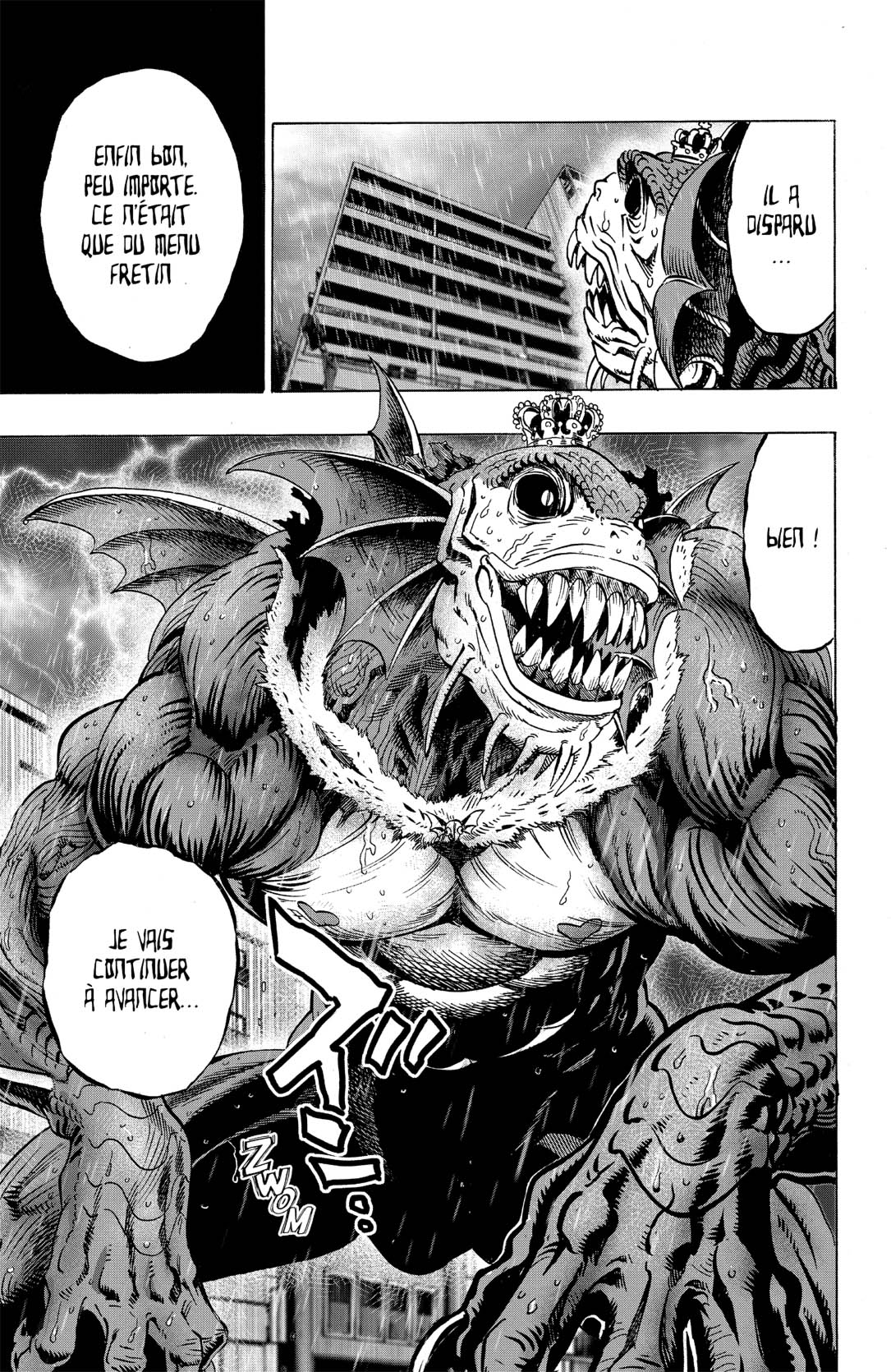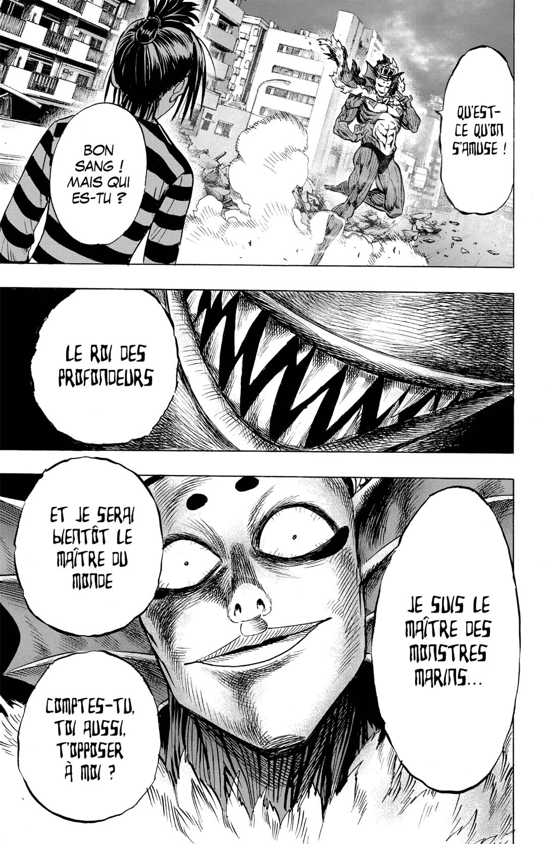 Le Roi des profondeurs, chef des monstres marins, a fait irruption en ville ! Face à la menace d’un fléau de niveau Démon, Saitama et Genos se mettent aussitôt en route. Le Roi des profondeurs erre dans les rues de la ville et est bien déterminé à exterminer la race humaine.
