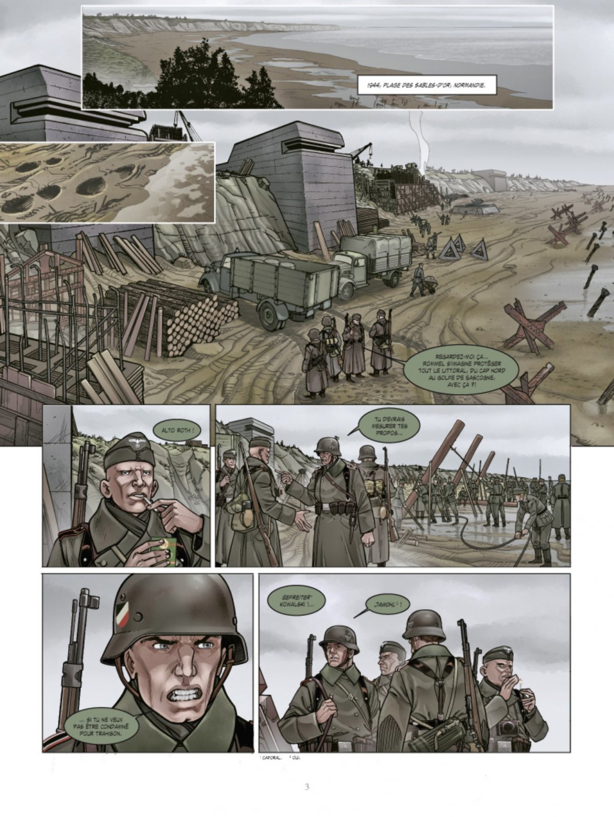 La mort ne choisit pas son camp. 1944, Plages des Sables d’Or, Normandie. Le général Rommel donne les dernières instructions aux membres des forces de l’Axe pour la défense du front normand. Parmi eux, quatre jeunes soldats allemands. De l’autre côté de la Manche, Robert Capa, photographe de guerre, Hard Gund, allemand naturalisé américain, et deux autres G.I. de la Easy Company sont briefés sur l’opération Overlord. Dans quelques jours, entre le sifflement des balles et le craquement des explosions de mortier, Allemands comme Américains vont connaître la peur, les larmes et la mort. Leur sang va teinter de rouge le sable de celle qui deviendra la tristement célèbre « Omaha Beach ».