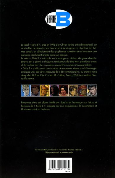 Opération Série B ! est un album oneshot de La Grenouille Noire, Bruno Bellamy, Jean-François Bruckner, Gérald Parel, Étienne Le Roux / Goulven, Manchu, Alfred, Jian Yi, Cyril Pedrosa, Marc-Antoine Boidin, Gobi, Virginie Augustin, Thorn, Fabien M / Mense, Nicolas Malfin, Didier Cassegrain, Zanzim, Sébastien Damour, Valentine Pasche / Valp, Philippe Ogaki, Christophe Quet, Richard Guérineau, Jérôme Lereculey, Dominique Bertail, Hervé Tanquerelle, Bertrand Gatignol, Reno, Kévin Hérault / Trantkat, Run, Didier Crisse, Vince, Stan, Éric Henninot, Frédéric Besson, Ludwig Alizon, Bill, Bojan Kovacevic, Damien, Philippe Buchet, Fabrice Parme, Yoann, Emem, Pierre Schelle, Léo Pilipovic, Igor Kordey et Christophe Araldi, paru en 2008. Selon nos informations, il en existe 2 éditions, dont la principale est éditée par Delcourt en 2008.
