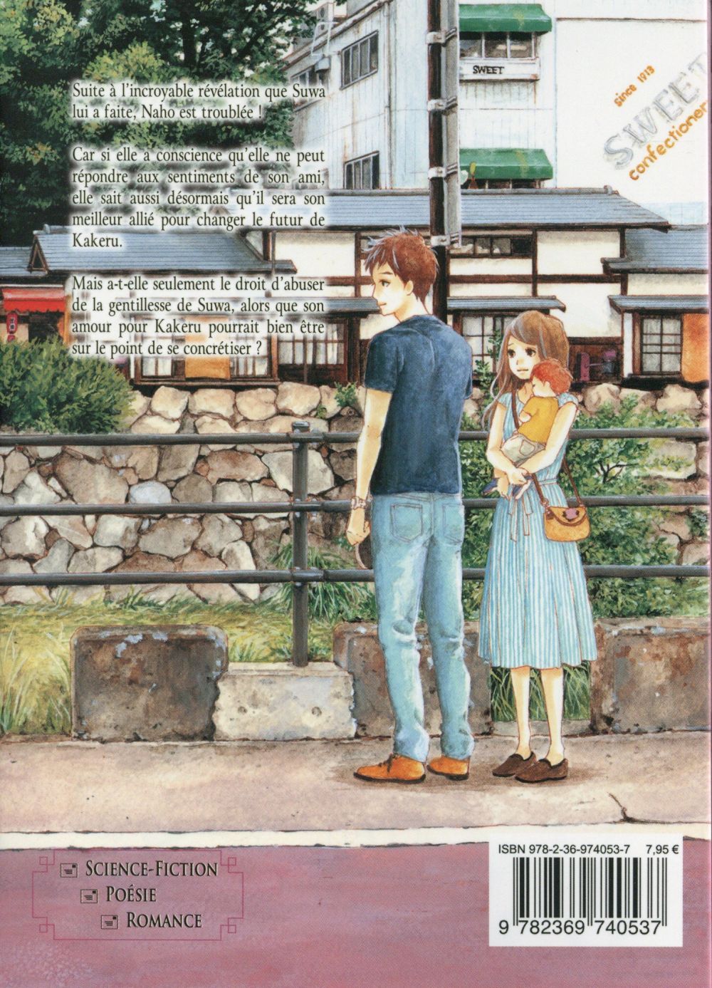 Suite à l’incroyable révélation que Suwa lui a faite, Naho est troublée ! Car si elle a conscience qu’elle ne peut répondre aux sentiments de son ami, elle sait aussi désormais qu’il sera son meilleur allié pour changer le futur de Kakeru. Mais a-t-elle seulement le droit d’abuser de la gentillesse de Suwa, alors que son amour pour Kakeru pourrait bien être sur le point de se concrétiser ?