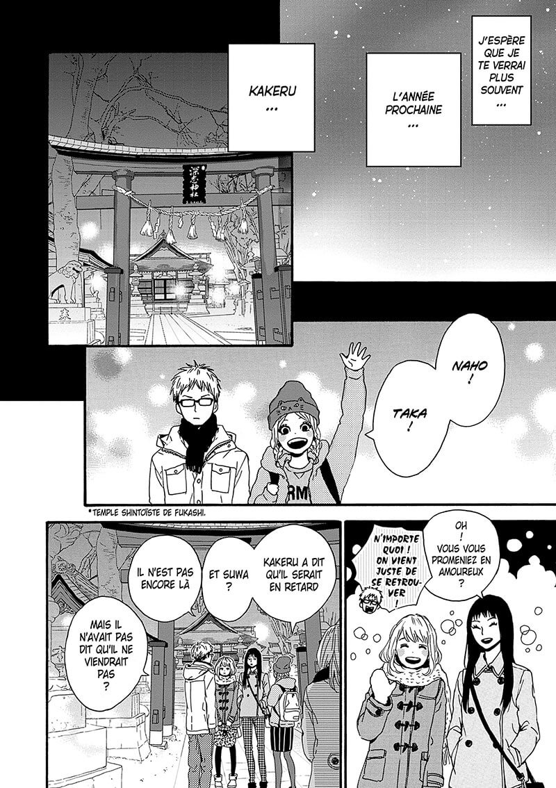 La nouvelle année approche... Mais pour Naho et ses amis, cela signifie aussi une chose : la date fatidique du terrible choix de Kakéru arrive également. Pourront-ils aider leur ami et lui éviter le pire des futurs ? Mais qu’adviendra-t-il, dans tout ça, de l’amour de Suwa ? Rien de tout ça n’est sûr, et c’est le coeur lourd et inquiet que Naho envisage les semaines qui viennent... L’inévitable pourra-t-il être évité ?