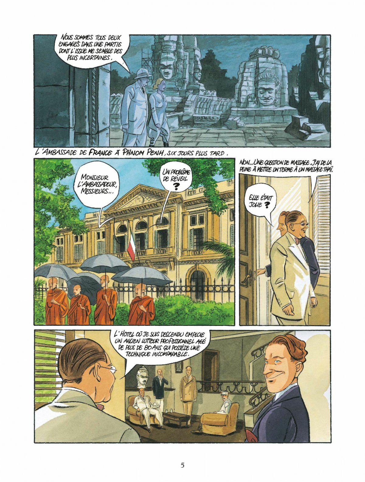 Crépuscule sur la cité d’Angkor perdue dans la forêt cambodgienne. Une automobile s’engage sur la voie pavée qui mène au coeur du sanctuaire khmer pour s’immobiliser aux pieds de deux bouddhas endormis... Dans la nuit tropicale, l’assistante du défunt professeur Gossiaux rencontre un individu envoyé par Paris afin de contrôler les faits et gestes de Charles-Albert Lafleur dont le quai d’Orsay se méfie en raison de son indépendance et de ses méthodes singulières... Deux semaines plus tard, dans les jardins de l’Ambassade de France à Phnom Penh, le même Charles-Albert fait feu de son fameux pistolet Mauser sur la concubine du Prince Jayavarman au moment même où elle menaçait celui-ci d’un revolver. La jeune femme s’effondre, tuée sur le coup. Rien ne s’est déroulé comme prévu... Surveillée par les services secrets français en raison de ses liens de parenté avec l’assassin présumé du professeur Gossiaux, elle devait être arrêtée à l’issu de la réception. Bien qu’ayant sauvé la vie du prince héritier du Royaume, Charlie est désavoué par les autorités locales et rappelé en France. Le fonctionnaire du quai des Orfèvres ne peut qu’obtempérer en prenant le premier bateau en partance pour Marseille. La petite communauté d’expatriés semble soulagée de le voir partir. Elle a bien évidemment tort...