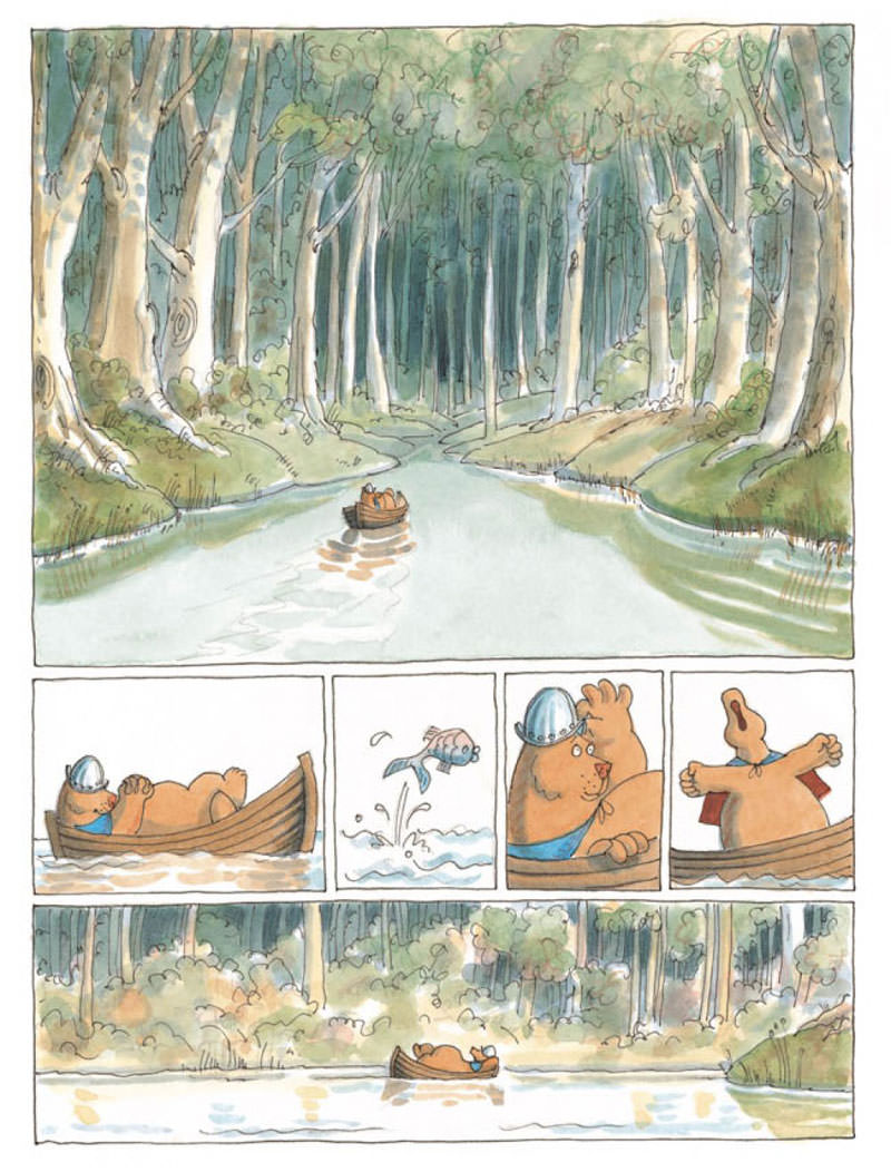 Nous avions laissé l’ours dans une barque sur la Tamise. Nous le retrouvons au coeur d’une foret, qui s’avere etre magique : l’ours est soudain tout petit, et bientôt enlevé par un joli oiseau. C’est a ce moment que l’Ours retrouve le petit garçon ! Les deux amis finissent par découvrir un magnifique arbre-château, dont les occupants sont séquestrés par un voleur. En bon chevaliers, l’Ours et le petit garçon s’activent a libérer tout ce beau monde !