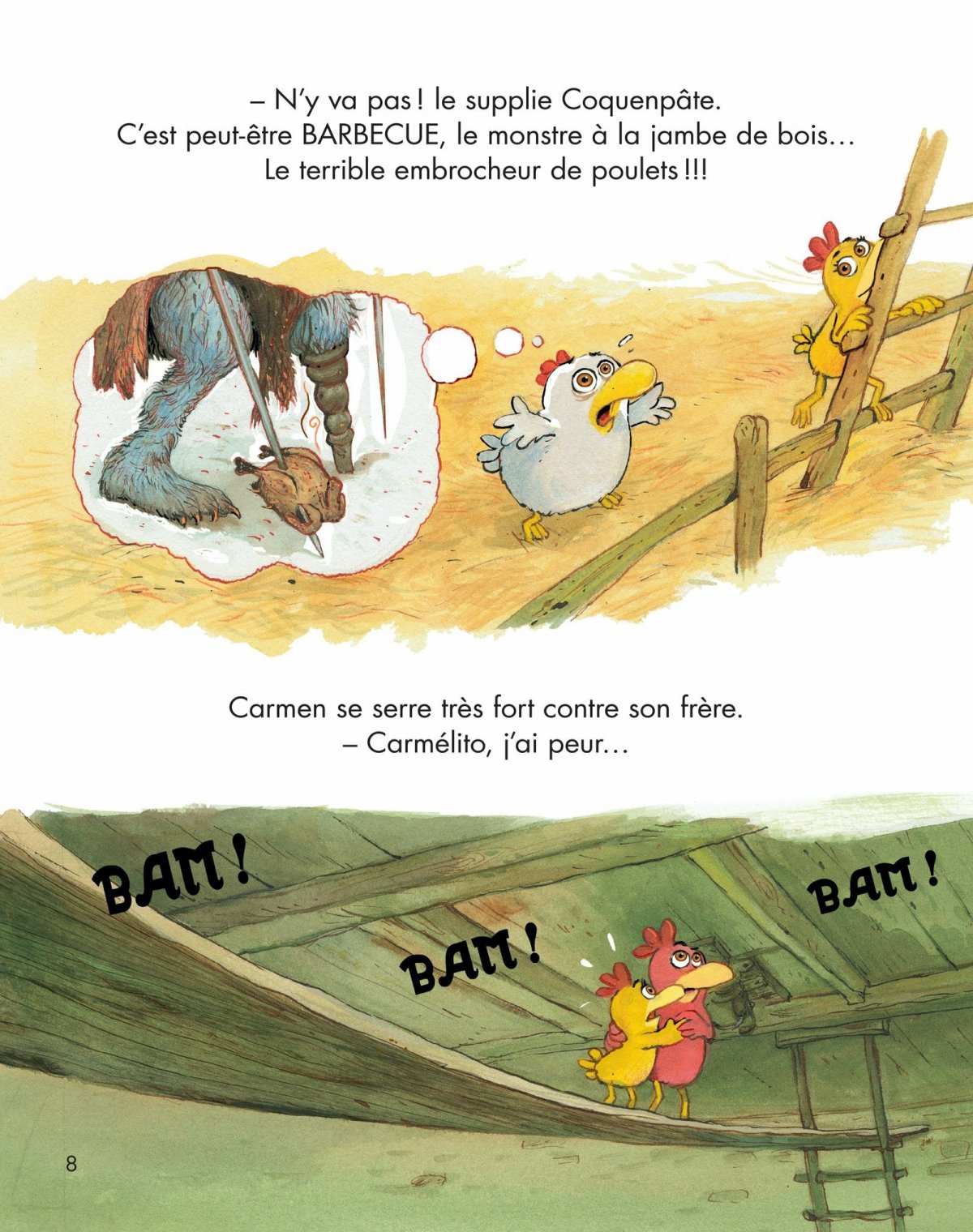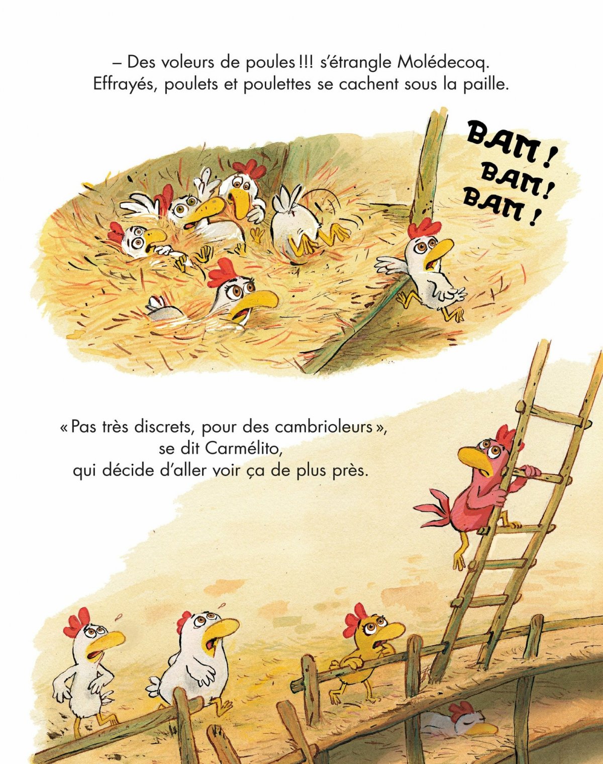 Une nuit, les habitants du poulailler sont tirés de leur sommeil par des bruits inquiétants en provenance du grenier. "Des voleurs de poules !" s’écrient les enfants terrifiés