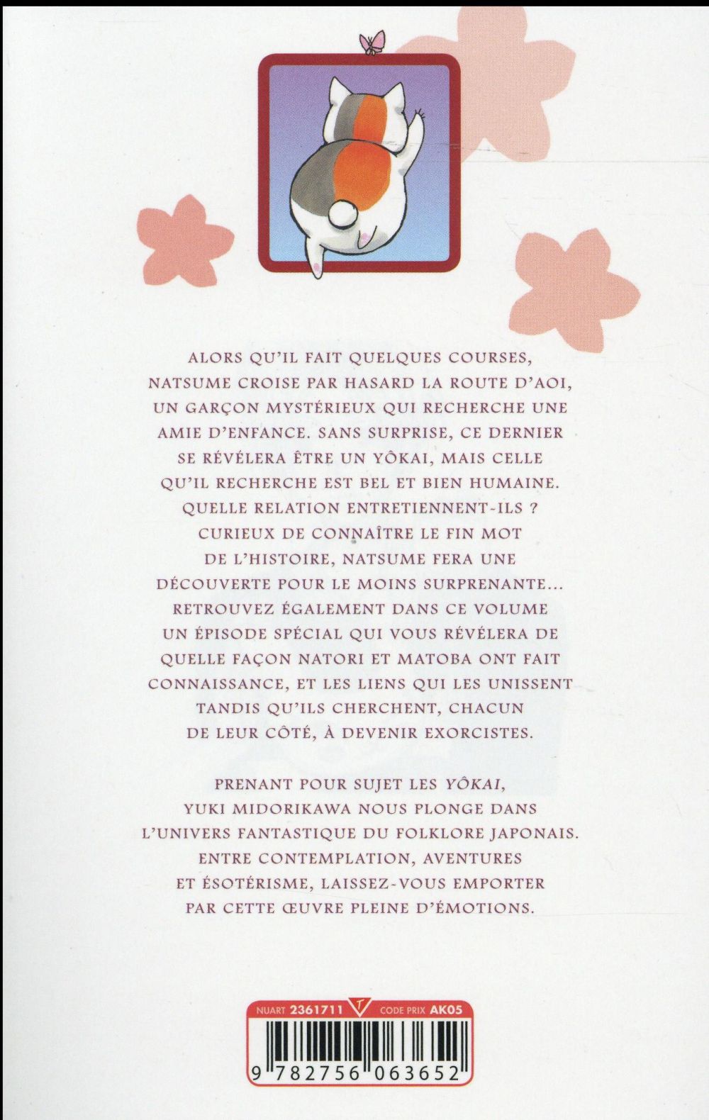 Adolescent orphelin de nature solitaire, Natsume voit des yôkai depuis son enfance. Son existence, qui n’avait déjà rien d’ordinaire, le devient encore moins lorsqu’il hérite d’un étrange carnet qui lui permet non seulement de commander les yôkai, mais aussi d’avoir droit de vie et de mort sur eux. Voila de quoi susciter bien des convoitises...