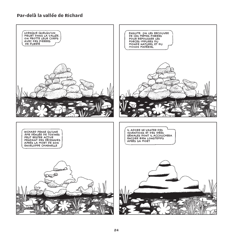 Par-delà la vallée de Richard est un album oneshot de Michael Deforge, paru en 2020. Selon nos informations, il n'en existe qu'une seule édition, publiée par Atrabile.