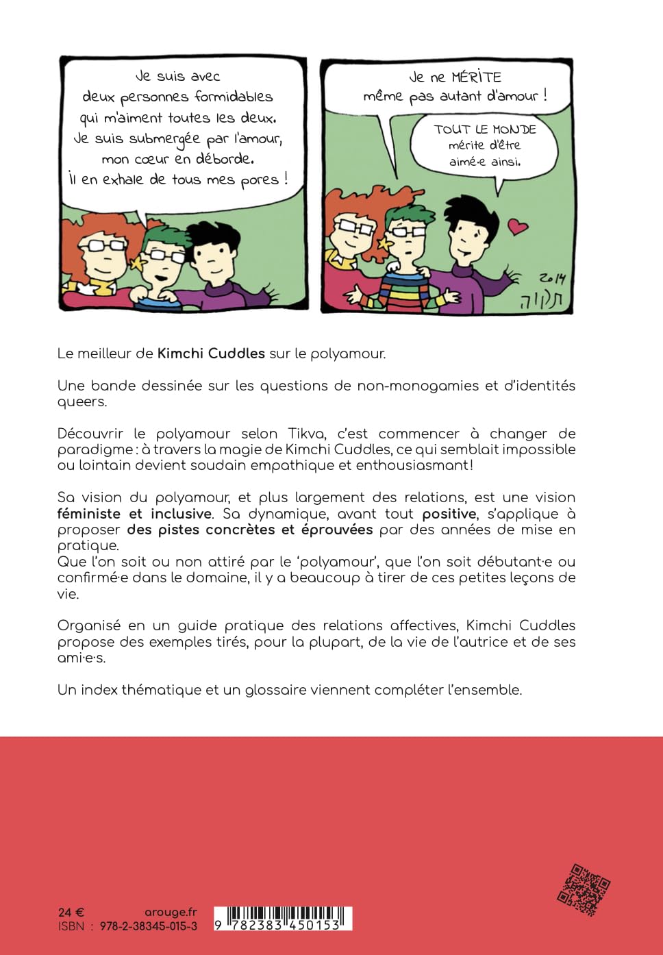 En outre, ce travail de compilation sur le « polyamour » permet de lire (ou relire ! ) les planches par entrées thématiques. On trouve ainsi dans la table des matières des chapitres sur les relations qui fonctionnent bien, ou inversement sur comment identifier ce qui pose problème, sur les relations à distance et le temps disponible, sur "l’Énergie de la Nouvelle Relation" ou encore sur les identités de genre ou l’asexualité. Découvrir le polyamour selon Tikva consistera pour une bonne part de son lectorat à changer de paradigme à travers la magie de Kimchi Cuddles : ce qui semblait impossible ou difficile devient soudain empathique et enthousiasmant !