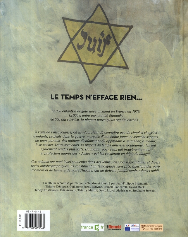 À l’âge de l’insouciance où ils n’auraient dû connaître que de simples chagrins d’enfants, projetés dans la guerre, marqués d’une étoile jaune, et souvent séparés de leurs parents, des milliers d’enfants ont dû apprendre à se méfier, à mentir, à se cacher. Leurs souvenirs, la plupart du temps amers et douloureux, les ont également rendus plus forts. Du moins, pour les quelques-uns qui ont trouvé amour et protection auprès des « Justes » qui les ont cachés en dépit du danger. Ces enfants ont transcrit leurs souvenirs dans des lettres, des journaux intimes et divers récits autobiographiques. Ils constituent un témoignage sans prix, attestant des parts d’ombre et de lumière de notre histoire, qui ne doivent jamais tomber dans l’oubli