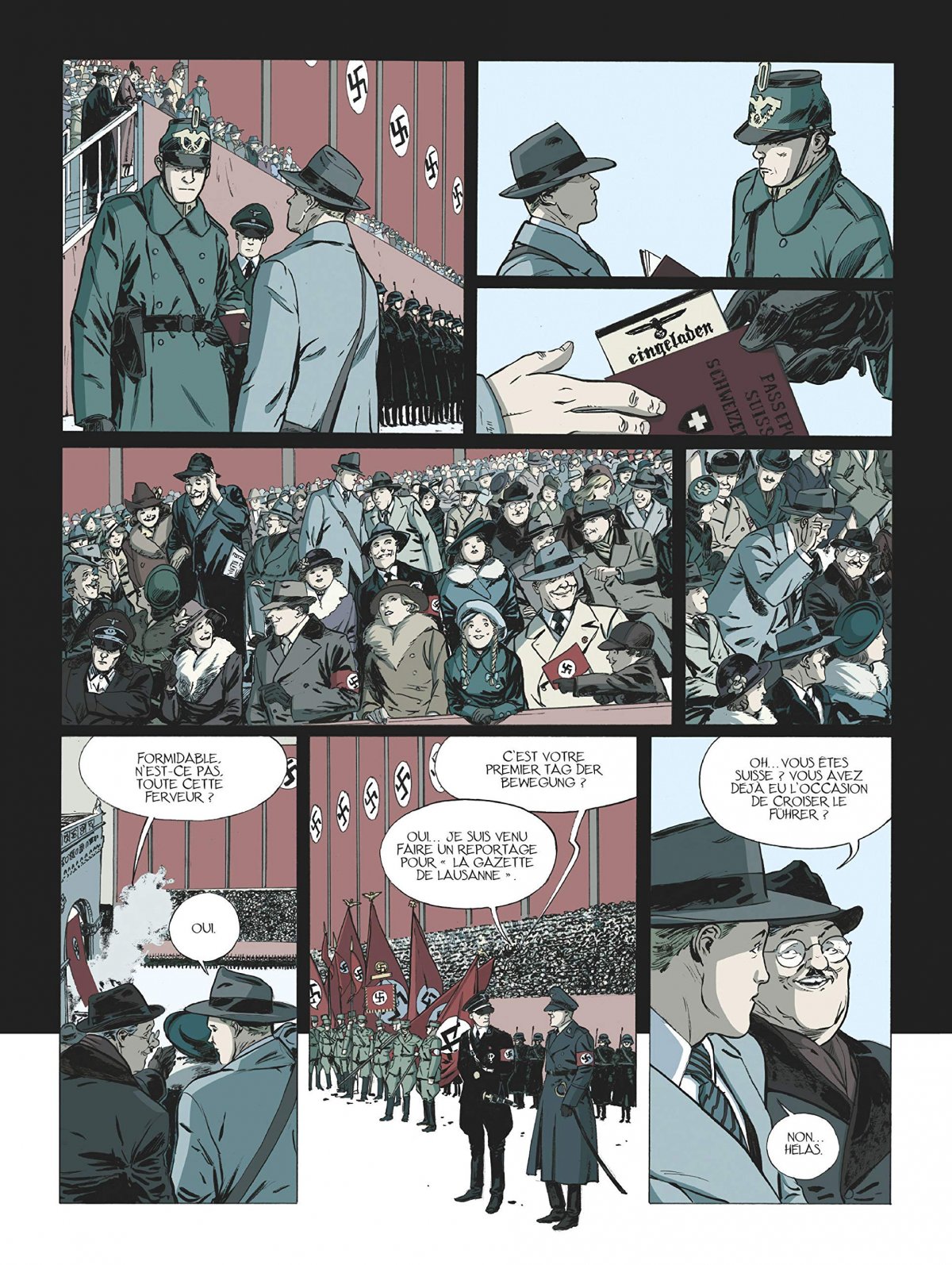 Berlin, décembre 1955. Nous sommes à l’aune de la guerre froide. Guntram Muller est journaliste pour un des plus grands quotidiens, le Berliner Zeitung. Il s’intéresse à une affaire assez singulière et très éloignée des préoccupations du Rédacteur en chef : le procès en révision de Maurice Bavaud, un jeune Suisse que l’on dit « illuminé » exécuté par les nazis en 1941 pour avoir tenté d’assassiner Adolf Hitler. Ce procès, réclamé par la Confédération Suisse se soldera finalement par un jugement pour le moins étonnant : le jeune « terroriste », décapité en 1941, est condamné à cinq ans de détention et cinq ans de perte des droits civiques. Guntram, ancien inspecteur de la célèbre Kripo (Kriminalpolizei), enrôlé dans l’Abwehr en 1939, s’intéresse de près à cette histoire. Et pour cause. Il a été mandaté, à l’époque des faits, par un proche de Himmler, pour enquêter sur les éventuels complices qui auraient pu aider le jeune Suisse à approcher aussi facilement le Führer dans le lieu le plus sécurisé, le fameux Nid d’Aigle