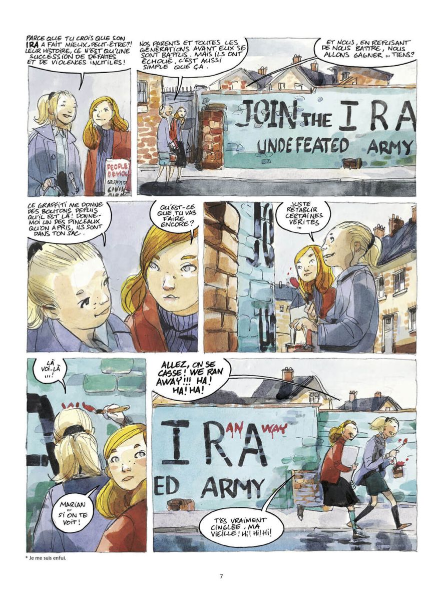 30 ans après, le passé se rappelle aux mauvais souvenirs de la famille Pearse... et de Tim ! Pour certains, la guerre n’est pas finie ! Déclenchée par Johnny et ses soldats de l’Ulster unioniste,une fusillade crible de balles la façade de la maison des Pearse. Un homme est tué qui s’écroule dans les bras de Mary. C’est Tim qui est visé, mais c’est Dylan, l’ex-petit ami de Mary, qui est tué. Le forfait est signé « Crazy Dog ». Frank « Crazy Dog » Brown, le père de Tim... mort et enterré il y a vingt ans ! Tim est alors exfiltré de Belfast, sous protection policière, vers l’Irlande républicaine. C’est un témoin précieux pour la police. Mais un témoin indocile. La vie recluse ne l’enchante guère. D’autant que Mary, que la police a fait venir pour le convaincre de parler, annonce qu’elle est enceinte, et que Tim est le père. Alors ce dernier décide de fausser compagnie à ses protecteurs et de régler lui-même ses comptes avec le passé... Une histoire d’amour magnifique et tourmentée dans le Belfast tout aussi tourmenté d’aujourd’hui, entre Brexit et retour des tensions identitaires. Kris et Vincent Bailly reviennent en Irlande du Nord douze ans après le succès du récit complet Coupures irlandaises, et clôturent leur trilogie avec ce troisième tome magnifique.