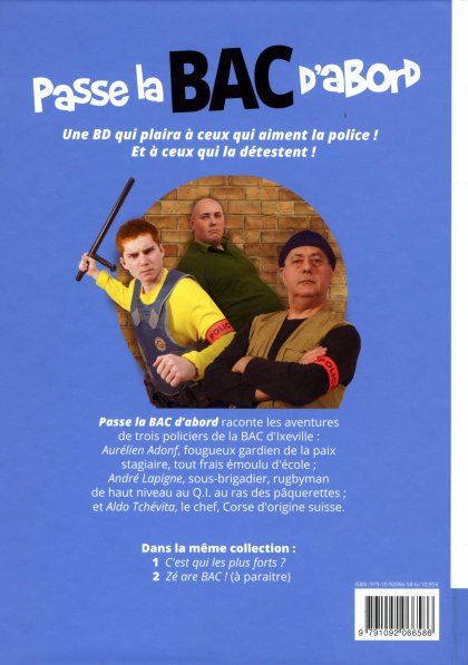 PASSE LA BAC D’ABORD est une BD humoristique qui décrit le quotidien de trois policiers de la BAC (Brigade anti criminalité) d’Ixeville. Gros bémol : ils sont à la Police Nationale ce que Gaston Lagaffe est aux employés de bureau : un tsunami, une déflagration de catastrophes !