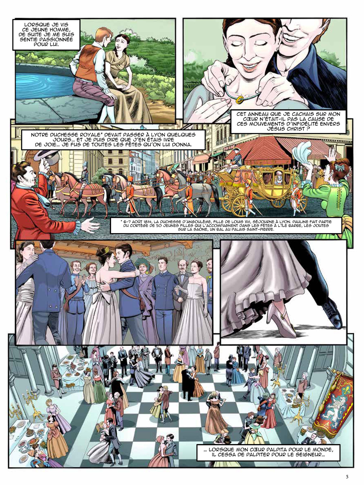 Pauline Jaricot a voué sa vie à la mission et aux plus démunis. Elle se consacre à Dieu à l’âge de 17 ans. Elle met toute son intelligence et son zèle au service de l’Église. Elle instaure un ingénieux système pyramidal de collecte pour les missions, qui va s’étendre dans le monde entier. Cela deviendra l’ « Association de la propagation de la foi ».Elle fonde le « Rosaire vivant » qui réunit les personnes dans la prière du chapelet, et ses membres se comptent bientôt par milliers
