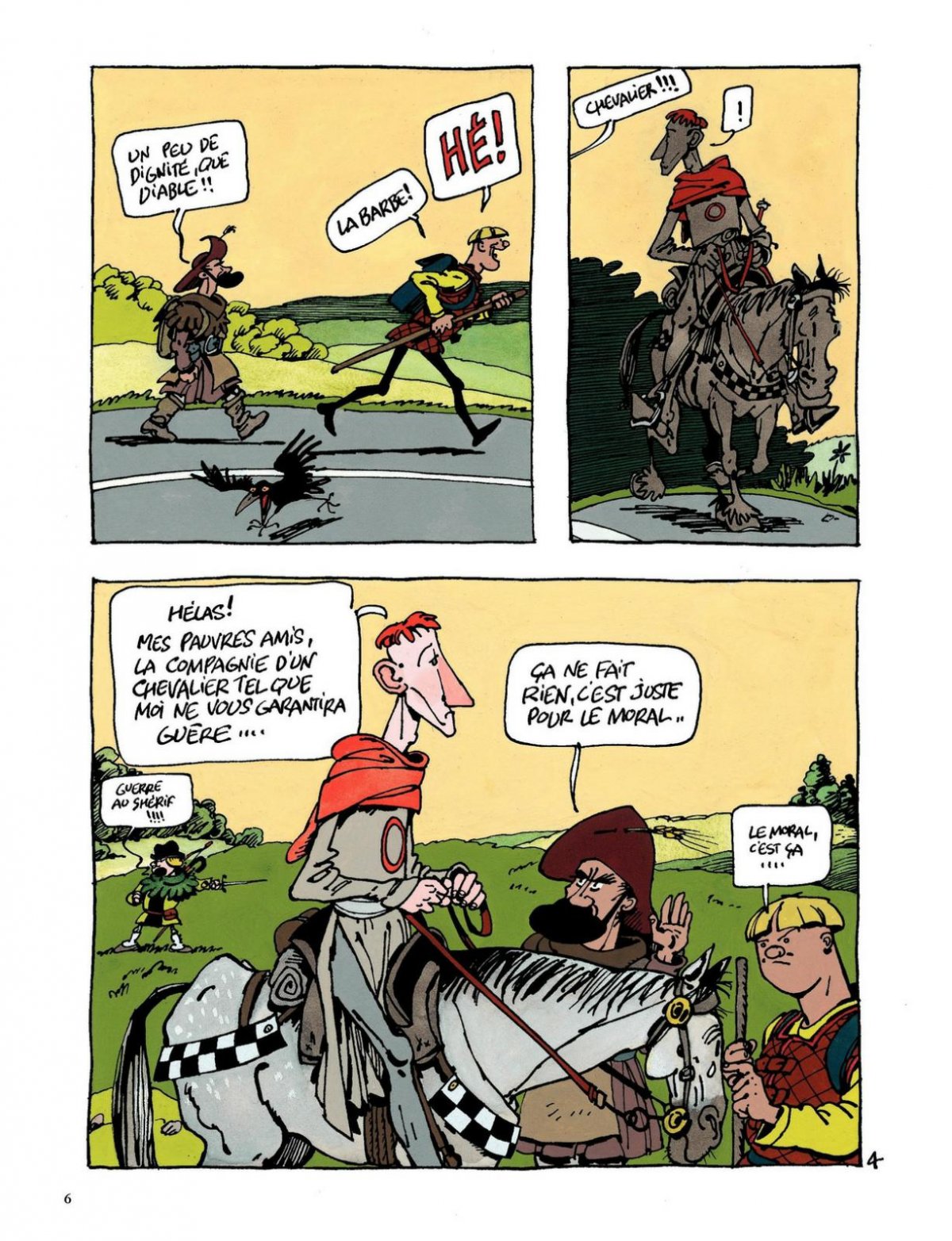 Oyez, braves gens, oyez ! Ecoutez la complainte du pauvre chevalier, baron nul et seigneur de camelote ! Triste destinée que la sienne, vraiment. Banni par le roi Arthur, il n’a commis d’autre crime que d’avoir mis le nez dans une affaire d’Etat. Au propre, et pas au figuré : lors d’un repas a la Cour, il s’est piteusement affalé sur le genou de Lancelot, découvrant sa relation coupable avec la reine. Du coup, le voila qui erre sur les routes comme une âme en peine en compagnie de Médius, " financier de choc ", et de son bras droit Métatarse. Pour ceux a qui la légende arthurienne n’évoque que de très lointains souvenirs, la fréquentation de ce Pauvre Chevalier s’impose sans coup férir ! Mais attention : toute ressemblance avec de vieux manuels scolaires ne saurait être qu’une regrettable coïncidence. Car F’Murrr prend quelques distances avec l’Histoire officielle.