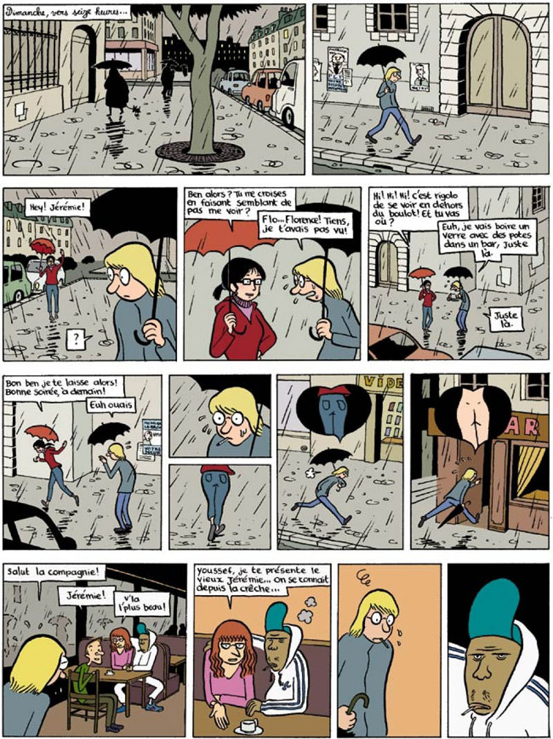 Côté boulot, Jérémie (une sorte de Duduche 2003) oeuvre chez Concept Video Games. Jean-Jacques rame dans la BD et Sandrine vend des viennoiseries au métro Robespierre. Et puis il y a Florence, qui tient l’accueil de Concept Video Games.