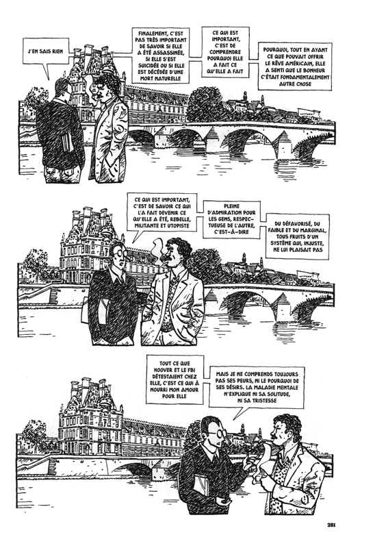 Jean Seberg, le 11 septembre 1973 à Santiago, Debord et les Tupamaros... Qui d’autre qu’Angel de la Calle, auteur de Tina Modotti, pouvait conter ce qu’ils eurent de commun ou auraient pu avoir... À la façon du Marelle, de Cortazar, l’auteur nous offre un roman graphique déconcertant, une mémoire des vaincus de la "Guerre froide" culturelle que l’Empire étasunien ména aux avant-gardes sudaméricaines dans les années 1970.