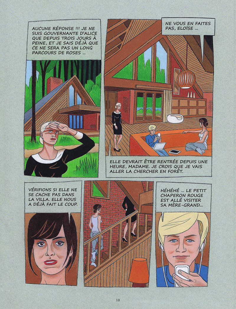 La petite Alice court la forêt de Brocéliande à la recherche de la belle au bois dormant. Sa mère-grand, philologue spécialiste de Charles Perrault, lui a révélé la vraie origine de ce conte : le roman du XIVème siècle "Perceforest". Mais elle refuse de le lui prêter car "il est trop terrifiant". En découvrant le livre tabou, sa gouvernante Eloïse prend conscience qu’Alice court de graves dangers ...