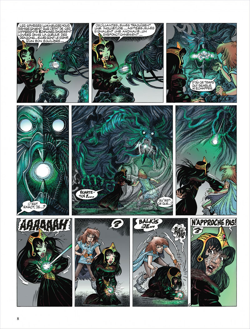 Percevan, dans Le Huitième Royaume, 15e tome de ses aventures imaginées par Léturgie et Luguy, est frappé par un étrange sortilège... Ce quinzième épisode de Percevan s’ouvre sur le château de dame Balkis, où le chevalier et son fidèle ami Kervin se reposent après leurs dernières aventures. Mais leur répit est de bien courte durée, car Percevan est victime d’un terrible maléfice ! Quelqu’un, ou quelque chose, lui vole son temps ! Pour rompre le sortilège, Percevan, aidé de Balkis et de ses amis magiciens, doit se rendre dans un lieu protégé par les sept royaumes. De la magie, des combats, de l’humour... une nouvelle aventure formidable à découvrir absolument ! 15e volet de Percevan ; une BD d’heroic fantasy avec un univers peuplé, comme il se doit, de jolies princesses, de méchants sorciers, de sortilèges et de malicieux enchanteurs...