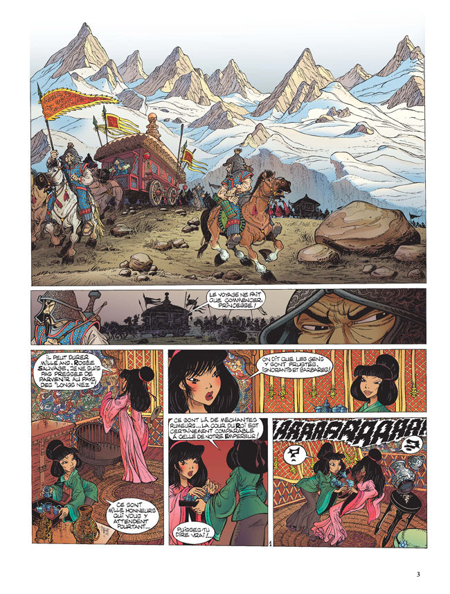 Fu Hao, une princesse chinoise, est enlevée par Qan le brigand, alors qu’elle faisait route vers le royaume de Percevan afin d’épouser le roi. Percevan et Kervin sont envoyés dans les mortelles Terres sans retour pour trouver les chevaux célestes, créatures mythiques issues du croisement d’une jument et d’un dragon, et rançon réclamée par Qan pour délivrer la princesse. Pour ce treizième tome, Luguy et Léturgie confrontent leur héros aux magies et mystères de la Chine médiévale, et nous offrent un récit cruel et envoûtant !