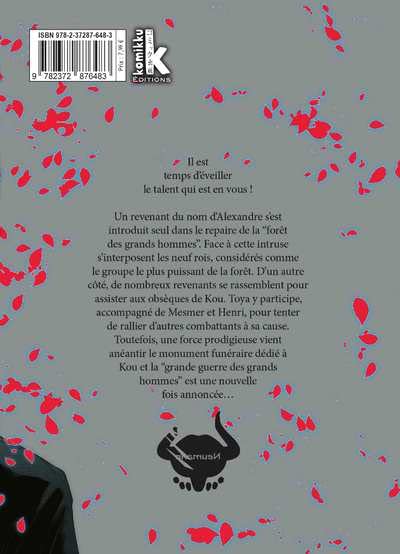 Un revenant du nom d’Alexandre s’est introduit seul dans le repaire de la "forêt des grands hommes’. Face à cette intruse s’interposent les neuf rois, considérés comme le groupe le plus puissant de la forêt. D’un autre côté, de nombreux revenants se rassemblent pour assister aux obsèques de Kou. Toya y participe, accompagné de Mesmer et Henri, pour tenter de rallier d’autres combattants à sa cause. Toutefois, une force prodigieuse vient anéantir le monument funéraire dédié à Kou et la "grande guerre des grands hommes’ est une nouvelle fois annoncée...