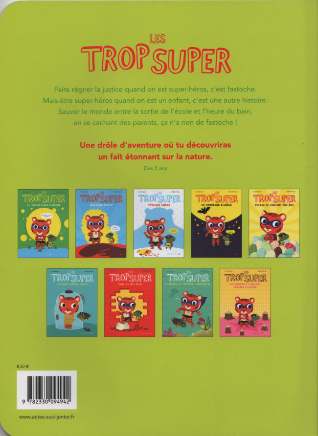 Lors d’un match de foot avec leurs amis, Bruno et Balbir découvrent que la forêt est infestée de champignons puants qu’ils surnomment “champugnons”. Le responsable ? Peter, le poussin péteur, un superméchant qui s’est juré de rendre toute la forêt nauséabonde ! Les Trop Super vont devoir faire preuve d’ingéniosité pour parvenir à aérer la forêt et arrêter Peter. Une histoire loufoque qui montre de façon originale l’impact des gaz à effet de serre.