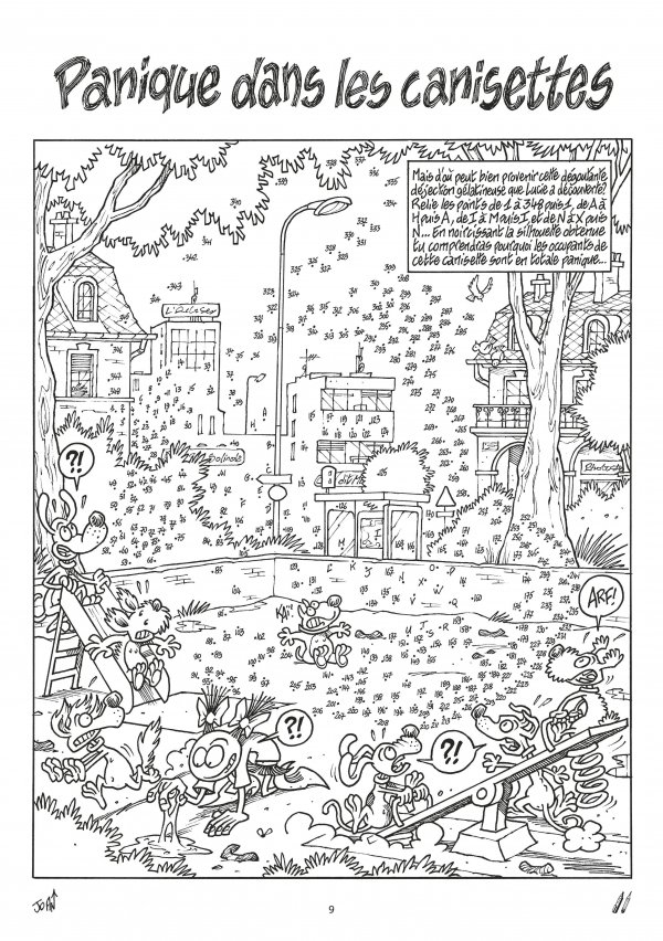 Le 20 avril 1994 débarque dans le journal Spirou une étrange fillette : la Petite Lucie, créée par Joan spécialement pour l’hebdomadaire. Toujours le mot pour rire, elle se voit dédier un espace de façon durable en proposant divers jeux dans lesquels se glissent avec malice des anecdotes instructives. Depuis plus de vingt ans, elle est d’ailleurs devenue une spécialiste des points à relier : reproductions d’oeuvres d’art célèbres, explorations sous-marines, songes fantastiques, sorties au musée ou nuitées en camping, la Petite Lucie a tout fait et vous invite à jouer avec elle dans ces différents tableaux. De point en point, au fil de ces quelque 70 pages, résolvez ses énigmes et découvrez ce qui se cache derrière ses nuages de nombres.