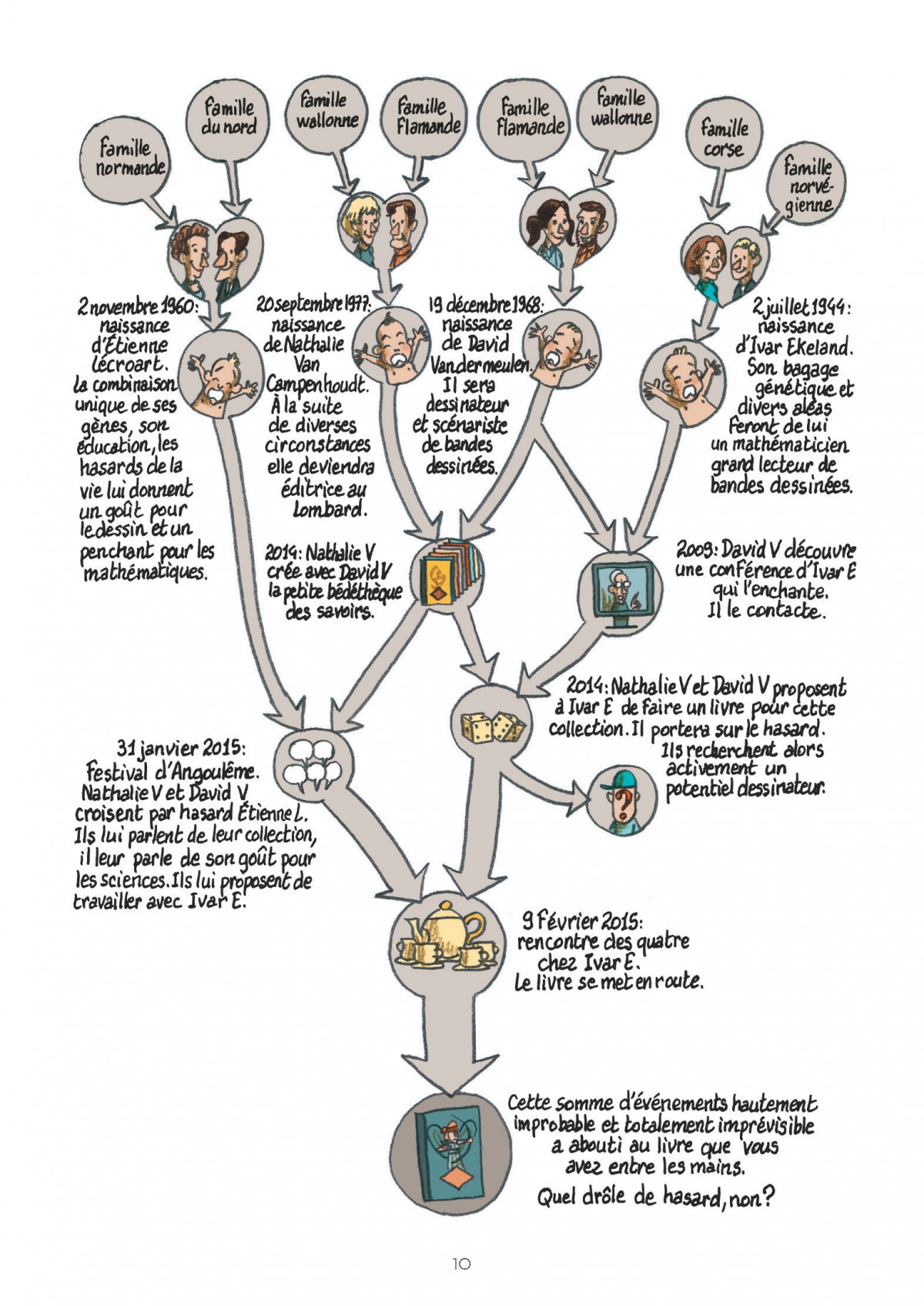 Probabilités, absence de certitudes, impossibilité de prévoir ce qu’il va advenir, théorie du chaos... De tout temps, le hasard accompagne l’homme et ne cesse de le fasciner. Mais qu’en pense réellement un grand mathématicien ? Cet essai en bande dessinée nous explique de façon simple et ludique le hasard et ses mystères ainsi que les stratégies qui peuvent nous aider à mieux appréhender les prévisions, la chance et les jeux de hasard !
