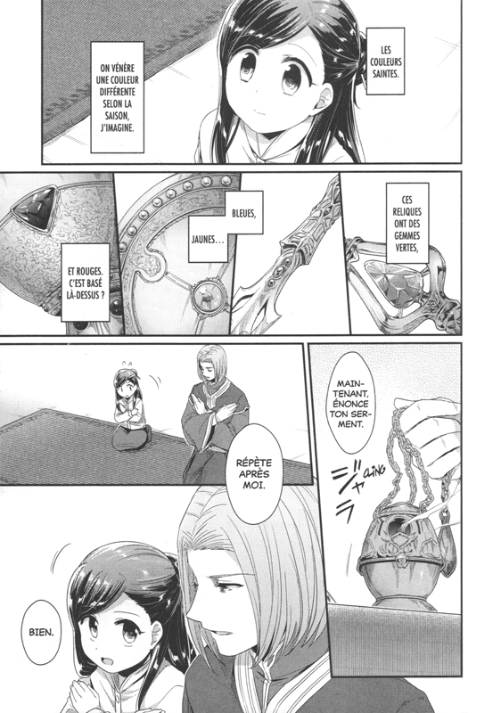 Main a obtenu gain de cause après une discussion acharnée au temple et est devenue apprentie prêtresse en robe bleue. Elle commence son nouveau travail et peut enfin lire des livres dans la sacro-sainte bibliothèque ! Cependant, bien des problèmes l’attendent, comme une différence de classe sociale, ou encore des servants difficiles