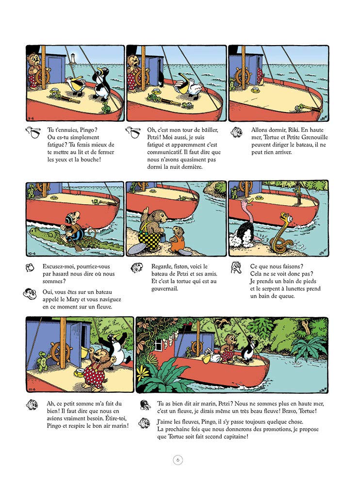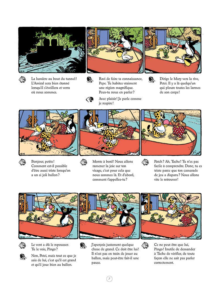 Le Mary remonte lentement un fleuve inconnu. C’est au bord de celui-ci que Petzi et ses amis font la connaissance de Tache, petite habitante du pays des pyramides. Elle a perdu son camarade de jeu et pleure à chaudes larmes. Nos amis décident tout naturellement de lui venir en aide...