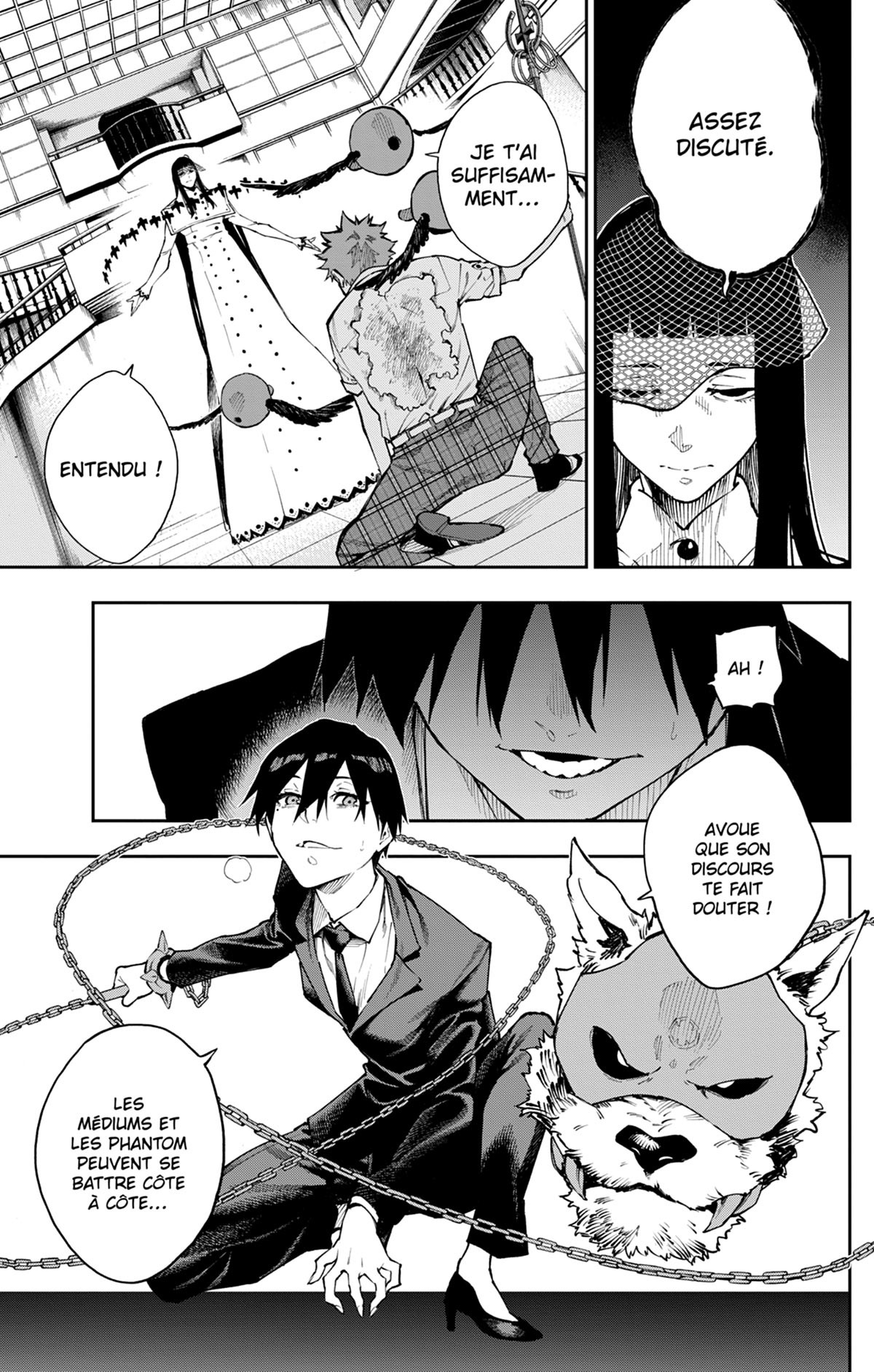 Aki et Kenma sont en difficulté face à la Marionnettiste, qui révèle son vrai visage ! Tandis qu’Iori prend le risque de voler au secours de ses collègues, son douloureux passé se rappelle à lui. Car, pour espérer vaincre l’alliée de Senjudoji, il va devoir prendre une cruelle décision... mais c’est sans compter Riku, qui maîtrise désormais son pouvoir d’aimant et refuse de voir son ami se sacrifier