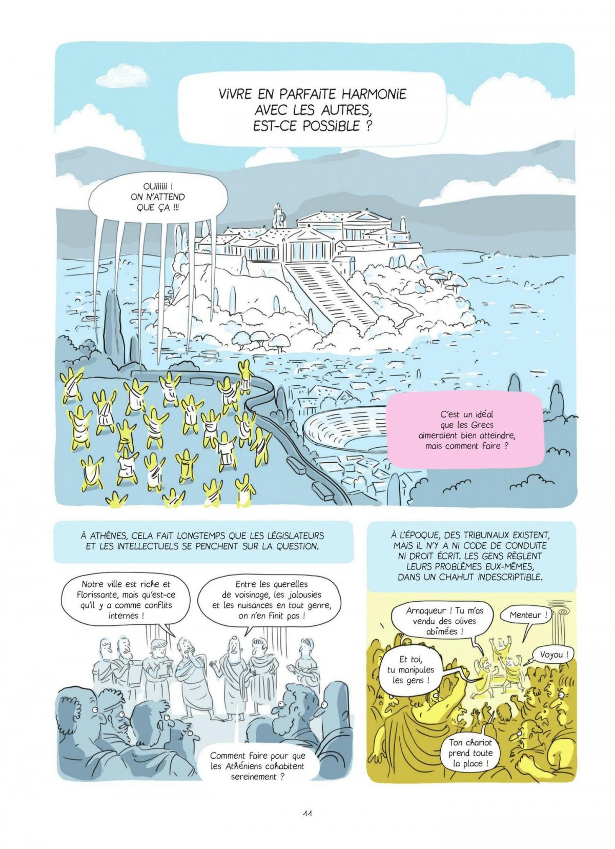 Comment être heureux ensemble ? Dans une société de plus en plus individualiste, comment atteindre l’harmonie avec nos semblables alors que nous autres « animaux politiques », nous sommes condamnés à évoluer en son sein ? A travers les siècles, l’homme n’a cessé de poser des cadres plus ou moins idéaux pour garantir l’épanouissement de chacun au sein du collectif. Comme tout cadre, celui-ci est régulièrement questionné. Plongeons-nous avec humour dans les pensées philosophiques nous guidant vers un meilleur « vivre ensemble » Pas moins de dix philosophes de l’Antiquité au 20ème siècle (Aristote, Hobbes, Spinoza, Diderot, Montesquieu, Tocqueville, Mill, Thoreau, Sartre et Arendt...) se succèdent pour nous présenter leur programme bonheur avec effets immédiats sur le quotidien. Et si le bonheur, c’était les autres ?