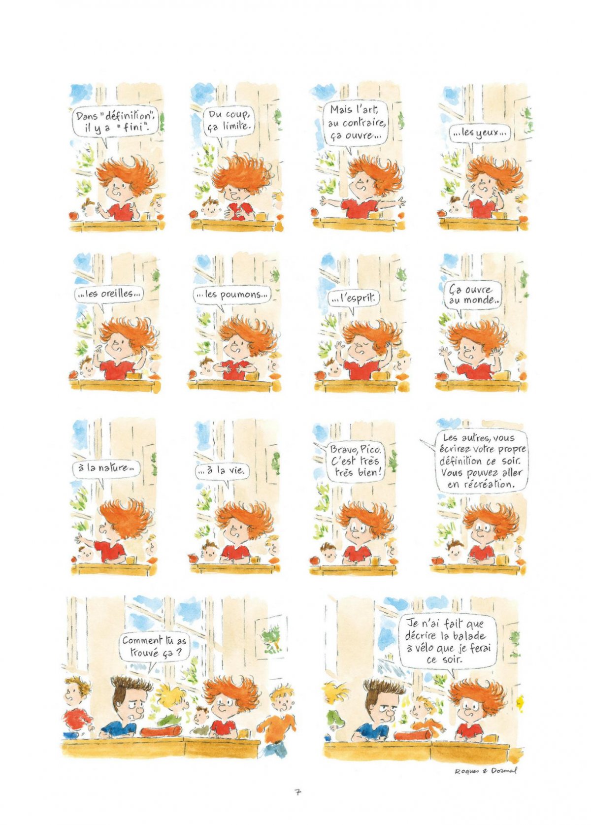 « Qu’est-ce que l’art ? » La question, de l’aveu même de la maîtresse, n’est pas facile... Mais il en faudrait plus pour réduire Pico Bogue au silence ; en quelques secondes il improvise : « L’art, c’est le contraire d’une définition. Dans "définition", il y a "fini". Du coup, ça limite. Mais l’art, au contraire, ça ouvre les yeux, les oreilles, les poumons, l’esprit. Ça ouvre au monde, à la nature, à la vie. » Hum... bref, « pour la fête de l’école, chaque élève exposera une oeuvre qu’il aura créée lui-même. » Pico, Ana Ana et leurs amis vont, à leur habitude, prendre les choses très au sérieux, leur but est simple : devenir des artistes avant la fin du mois. Chiche ?