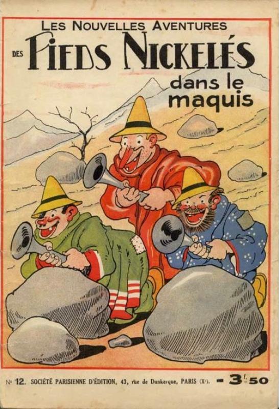 Pieds Nickelés dans le maquis (Les) est le volume 12 de la série Pieds Nickelés (Les) par Louis Forton, paru en 1935. Selon nos informations, il en existe 2 éditions, dont la principale est éditée par Société parisienne d’édition / SPE / Offenstadt en 1935.