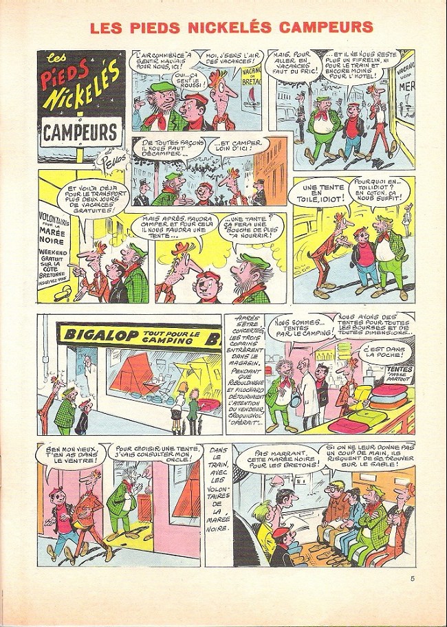 Pieds nickelés campeurs (Les) est le volume 63 de la série Pieds Nickelés (Les) par Roland De Montaubert et René Pellos, paru en 1968. Selon nos informations, il en existe 2 éditions, dont la principale est éditée par Société parisienne d’édition / SPE / Offenstadt en 1968.
