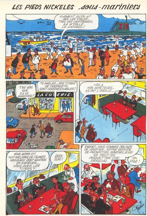 Pieds Nickelés sous-mariniers (Les) est le volume 84 de la série Pieds Nickelés (Les) par Roland De Montaubert et René Pellos, paru en 1975. Selon nos informations, il en existe 2 éditions, dont la principale est éditée par Société parisienne d’édition / SPE / Offenstadt en 1975.