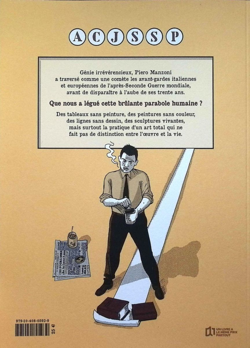 Piero Manzoni - À chaque jour suffit sa peine est un album oneshot de Paolo Bacilieri / Baciliero, paru en 2024. Selon nos informations, il n'en existe qu'une seule édition, publiée par Sarbacane.
