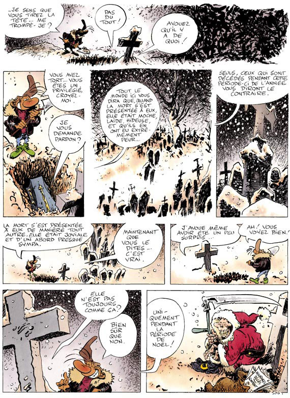Ce n’est pas parce que vous mangez sain que vous échapperez à la Mort. Ce n’est pas non plus parce que vous êtes gentil avec elle que la Mort vous laissera sain et sauf. Ce n’est pas parce qu’elle est en grève qu’elle ne sévit pas. Et surtout ce n’est pas en vous moquant d’elle ou en la défiant que la Mort sera plus clémente. Que du contraire ! La Mort manque mortellement d’auto-dérision ! Mais l’humour est au rendez-vous de chacune de ces rencontres ! De la même façon qu’on n’échappe pas à son destin, on n’échappe pas à sa mort ! Les hommes l’apprennent à leurs dépens : la Mort est imprévisible, incontrôlable et fantaisiste ! Évitez également de jouer à cache-cache avec elle... La Mort sait toujours où vous trouver ! Mais rassurez-vous, les lecteurs de Pierre Tombal sont exempts de toute mort. À bon entendeur !