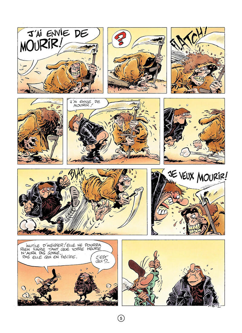 Pour cette série à l’humour noir de rigueur, Raoul Cauvin creuse toujours plus profond pour enterrer les travers de ses contemporains, sans fleurs ni couronne