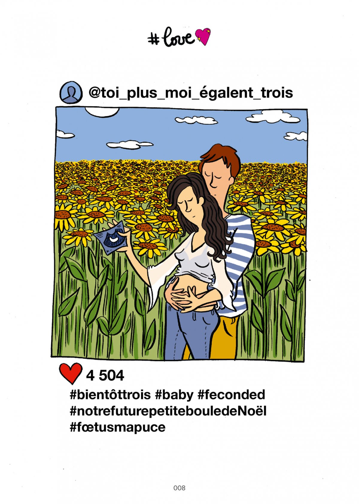 Quatre parties : #love , #food , #fashion , #lifestyle . Chaque partie se termine par un #reallife où des conseils sont donnés. Il se termine sur une cinquième et dernière partie, sorte de conclusion toute trouvée : #selfie Les hashtags utilisés sous les « photos » Instagram sont là pour montrer toute l’absurdité de cet univers du paraître et du « montré ».