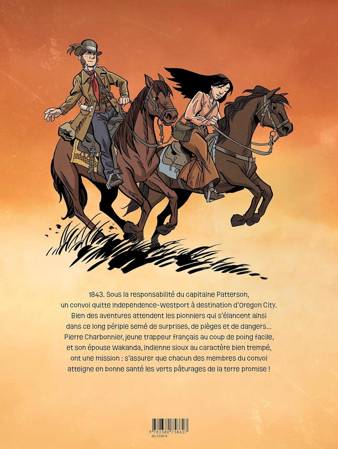 Au rythme tranquille des bêtes, une caravane de colons partis à la conquête de l’Ouest s’achemine sur la piste de l’Oregon. Les mauvaises rencontres, bandits de grand chemin ou tribus autochtones, ne sont pas rares sur cet itinéraire, et le danger rôde. C’est pourquoi la sécurité et la conduite du convoi sont assurées par Pierre Charpentier, un Français, et son épouse Wakanda. Or cette dernière est... indienne, ce qui ne manque pas de déclencher des réactions racistes autour d’elle. Pourtant, le climat de la caravane se tend lorsque Wakanda vient au secours d’un homme noir, Cudjoe, un esclave en fuite. Le chef de l’expédition, le capitaine Patterson, tente de garder la main... Mais la situation lui échappe lorsqu’un vol est commis chez des fermiers qui ont accueilli les voyageurs. Le coupable tout trouvé se nomme Cudjoe. Mais Pierre et Wakanda sont bien décidés à prouver son innocence. Une silhouette étrange n’a-t-elle pas été aperçue la nuit précédente autour du campement ? Et puis qui sont ces Indiens qui, de loin, semblent pister le convoi ?