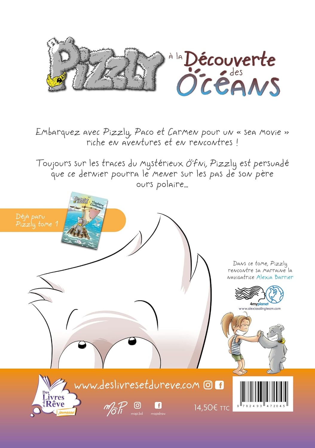 Pizzly à la découverte des oceans est le volume 2 de la série Pizzly par MoPi, paru en 2022. Selon nos informations, il n'en existe qu'une seule édition, publiée par Des livres et du Rêve.