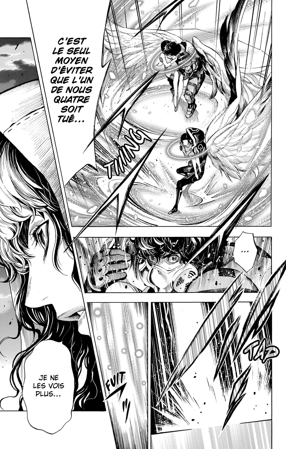 Pour sauver sa femme et sa fille, Mukaido a plongé tête baissée dans le piège tendu par l’ennemi. Rejoint par Mirai, les deux hommes sont condamnés à voler jusqu’à l’épuisement sous la surveillance de Hajime, le nouveau pantin de Metropoliman. De son côté, Rubel fait tout pour parvenir à doter de Saki du pouvoir des ailes. Obtiendra-t-elle ce don divin à temps pour venir en aide à ses alliés ?