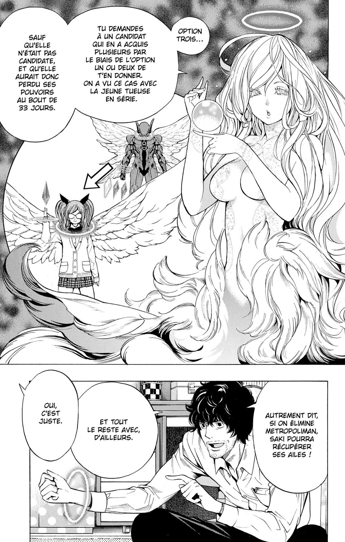 Après une scène touchante, où Saki révèle à Mirai les raisons qui l’ont poussée à se suicider, elle est désormais décidé à participer au combat. De son côté, Mukaidô, rongé par la maladie, veut supprimer Metropolitan au plus vite pour éviter qu’il ne prenne le pouvoir. C’est alors qu’un nouveau candidat désaxé et haineux enlève la femme et la fille de Mukaidô...