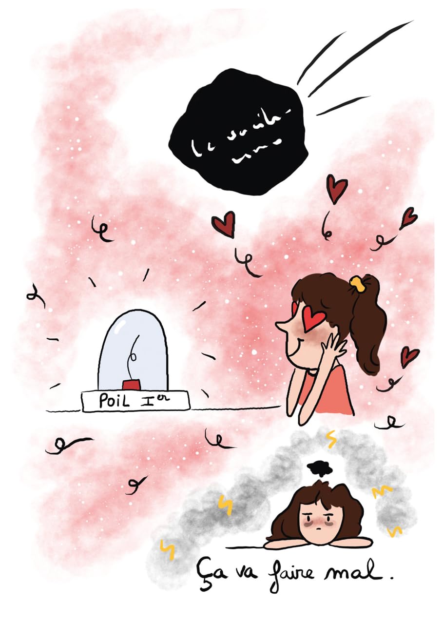 À 13 ans, Vicdoux fait un constat terrible : les filles ont des poils ! Douze longues années d’épilation plus tard, elle prend la (pas si simple) décision de troquer rasoirs roses, épilateurs électriques et autres cires contre crayons et stylet graphique : elle laisse ses poils tranquilles et milite contre l’injonction à l’épilation sur Instagram. Avec Les Poils de la colère, Vicdoux décrit un parcours de femme semé de nombreuses prises de conscience qui l’ont menée sur la voie d’un féminisme engagé. En fin d’ouvrage retrouvez en bonus Juliette Lenrouilly et Léa Taieb, les autrices de Parlons poil ! dans une postface hérissée.