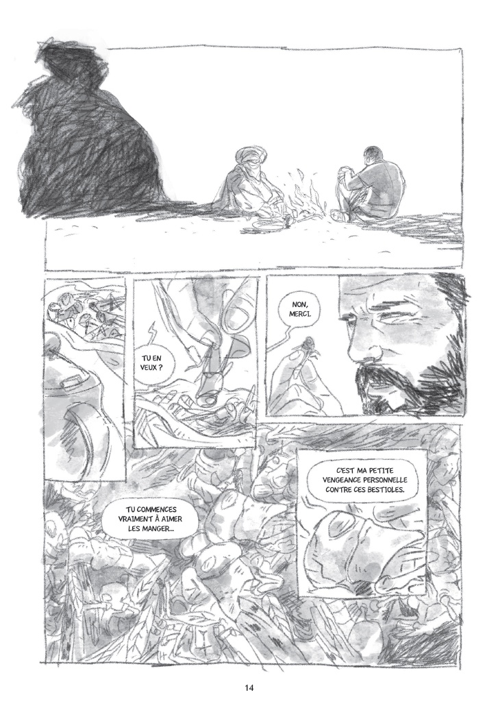 Un explorateur mystérieux et solitaire sillonne le Sahara à la recherche de criquets noirs qui ont bouleversé sa vie et dont il croit qu’ils vont provoquer un cataclysme. Hanté par la quête de leur origine, fasciné par une force obscure et écrasante, il ne peut que s’enfoncer davantage dans le désert, persuadé de pouvoir faire face, seul, à la fin du monde... La nuit, Imashek, l’esprit du désert, vient lui tenir compagnie et tente de le convaincre de l’absurdité de son projet. « Tout a une fin ! », ne cesse-t-il de lui répéter. Mais l’explorateur met du temps à comprendre qu’une fin peut donner naissance à un nouveau début et que la fin de son monde ne signifie pas forcément la fin du monde.