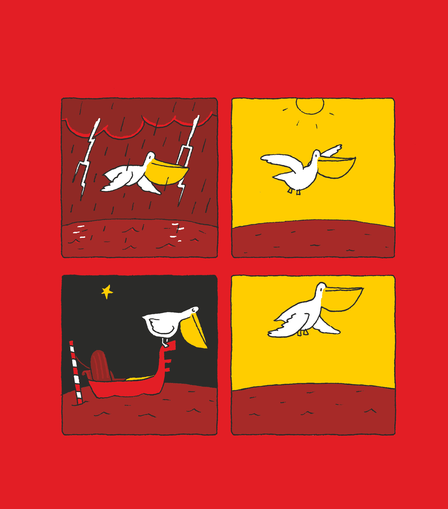 Il va ainsi traverser un nuage de barbe à papa, une fête foraine, une page blanche, une mer agitée, une jungle équatoriale, un désert brûlant, un royaume de nuages... Toujours à la poursuite du mystérieux petit bonhomme jaune... et de son livre volé.