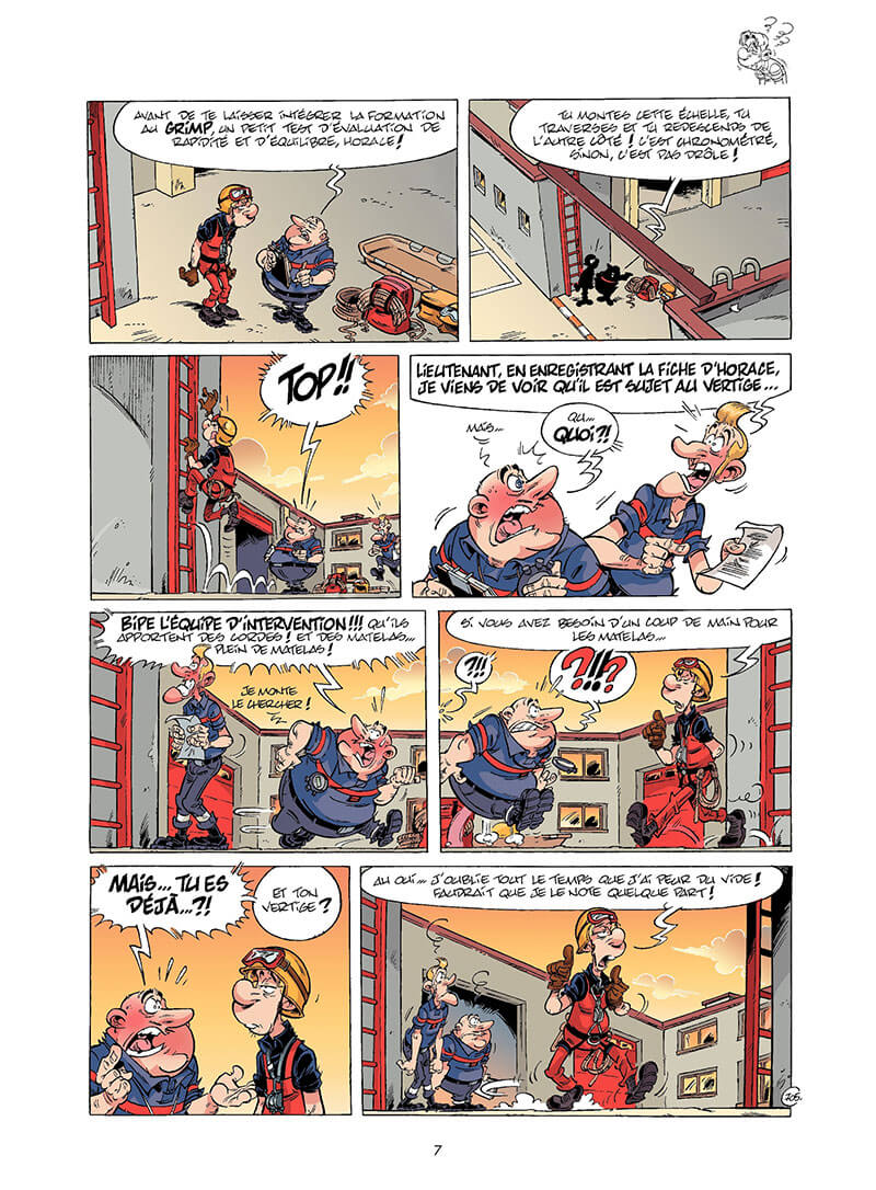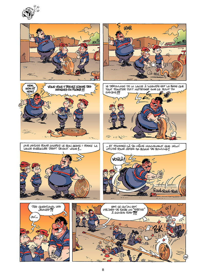 Les hommes des casernes se remettent à niveau ! Ce n’est pas parce qu’on est des professionnels qu’on n’a pas droit à des formations. En plus, nos valeureux soldats du feu en ont grandement besoin. Car les spécialités, c’est pas ça qui manque chez les sapeurs : entre les interventions en milieu périlleux, le sauvetage en mer, les dangers chimiques ou nucléaire... tout le monde pourra choisir son domaine de compétences ! Même Robert. Mais bon, lui, sa compétence, c’est la sieste... et le poulet au caramel et noisettes !