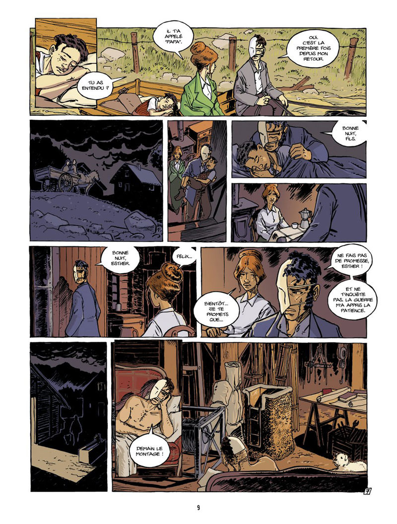 Par temps de guerre, le bonheur n’a pas toujours le visage que l’on croit. 1919. Voilà quelques temps que Félix est rentré au pays et qu’il a retrouvé femme et enfant. Alors qu’il tente de rattraper le temps perdu et de reconstruire son identité, emportée par un obus avec une partie de son visage, la tension monte dans le village. L’étrange affaire du tueur de bêtes prend de l’ampleur, et le commissaire en charge de l’affaire fait une surprenante découverte sur Félix... A. Dan et Galandon clôturent l’enquête, toujours en explorant, avec pudeur, la thématique du retour à la vie civile après le traumatisme de la Grande Guerre.
