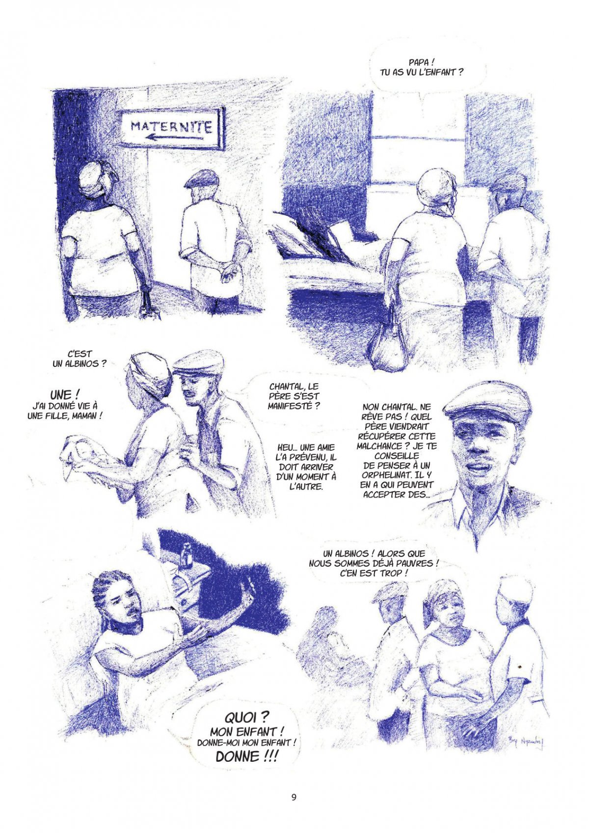 Les trois parties de cet album, par des dessinateurs aux styles fondamentalement différents, retracent les moments décisifs la vie de ces deux femmes, entre rejets, menaces et désir d’une vie normale. « Pour une couleur de peau » dénonce ainsi les discriminations voire les persécutions subies par les albinos aujourd’hui au Cameroun et Afrique Centrale, malgré une prise de conscience de plus en plus importante de la communauté internationale avec notamment La journée mondiale de l’albinisme est le 13 juin...