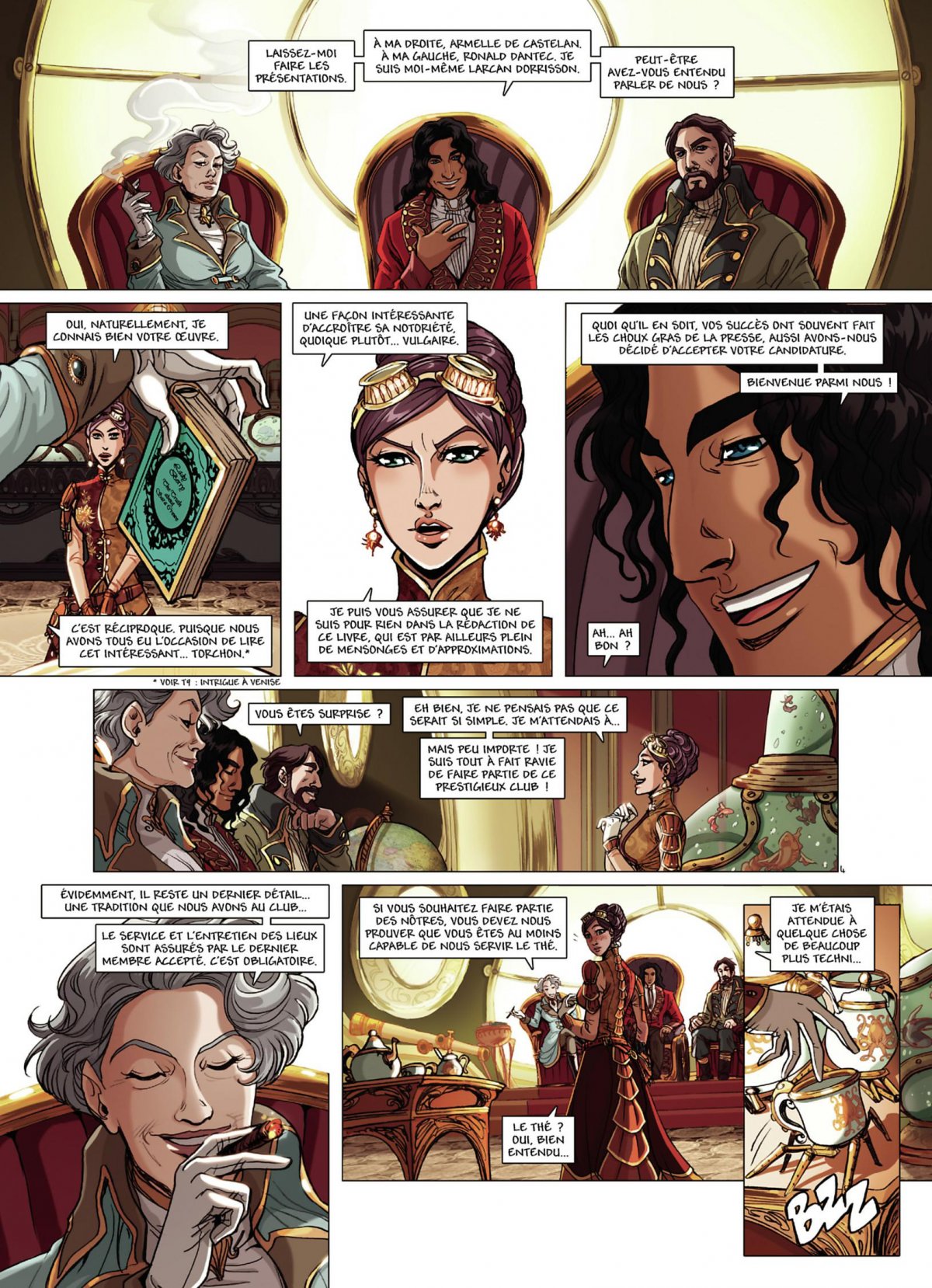 Un fantastique et magnifique univers steam-punk, toujours plus développé d’histoire en histoire, où compétition et romance se font la part belle ! Sara s’apprête à entrer au prestigieux Club des Automates. L’examen en est redoutable, il lui faut néanmoins le réussir si elle veut poursuivre son éclatante carrière. Toutefois, Sara n’a pas conscience du panier de crabes dans lequel elle est tombée. Alors que James tente désespérément de la demander en mariage, elle s’enlise de plus en plus dans le piège qui lui est tendu... et qui pourrait bien lui coûter la vie.