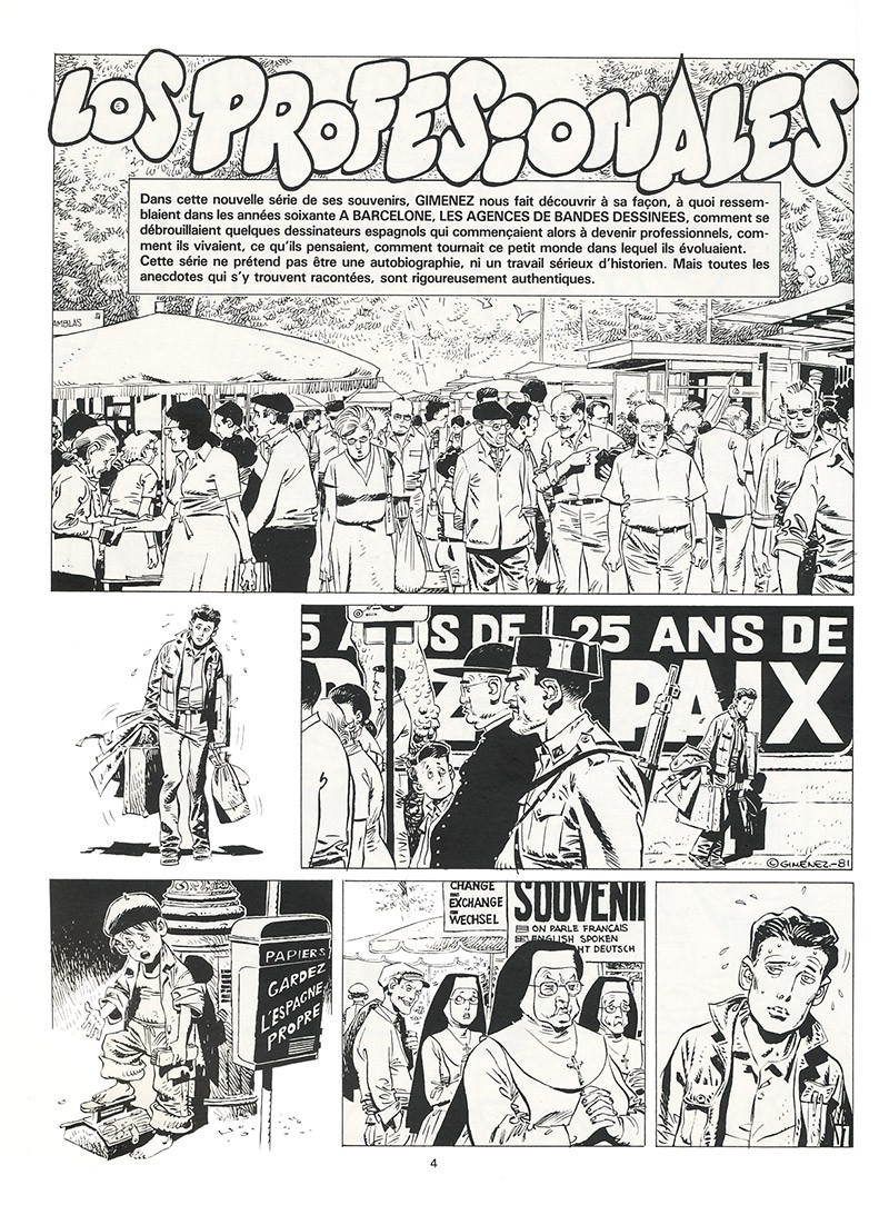 Professionnels (Les) 1 est le volume 1 de la série Professionnels (Les) par Carlos Giménez, paru en 1983. Selon nos informations, il n'en existe qu'une seule édition, publiée par Fluide Glacial / Audie.